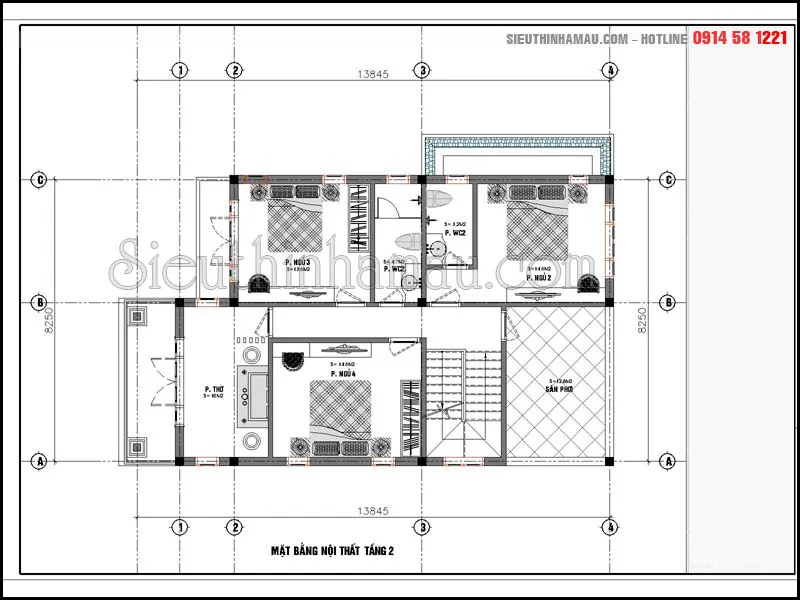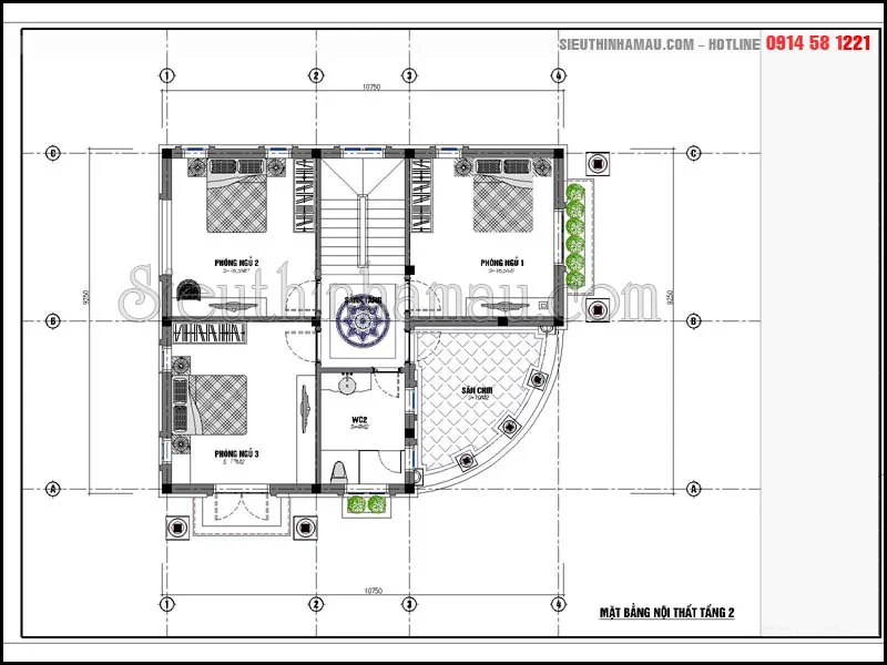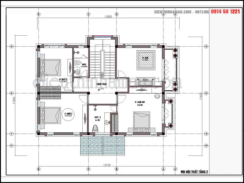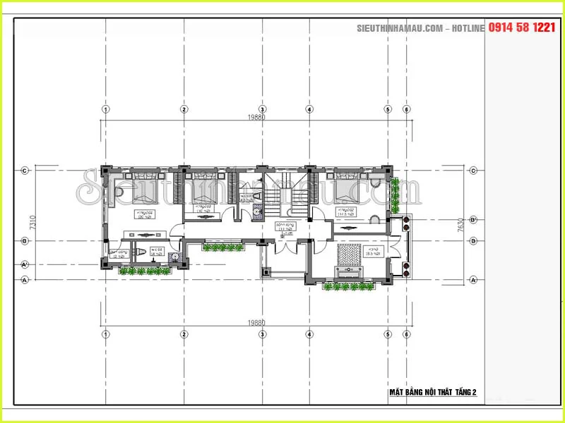 Bản vẽ nội thất tầng 2 mẫu biệt thự 10x12m 2 tầng 2 mặt tiền