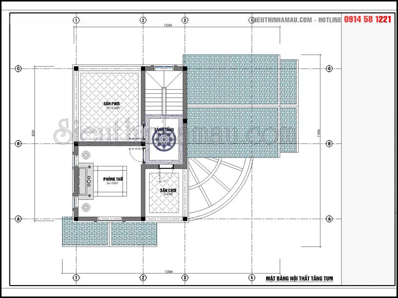Bản vẽ tầng tum bệt thự 2 tầng 10x12m 2 tầng mái thái 2 mặt tiền