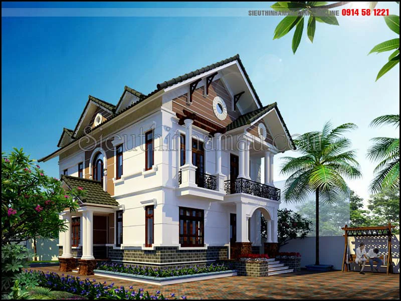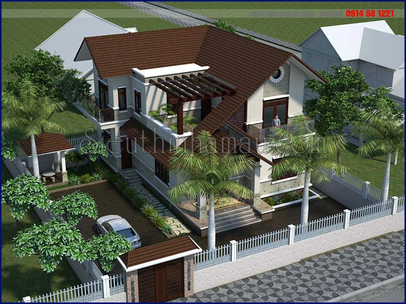 Tham khảo các mẫu thiết kế nhà biệt thự 2 tầng 2 mặt tiền mái thái đẹp nhất