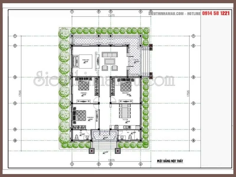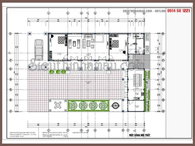 Mặt bằng nội thất nhà biệt thự vườn 1 tầng đẹp