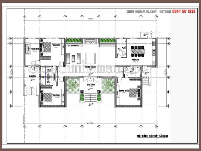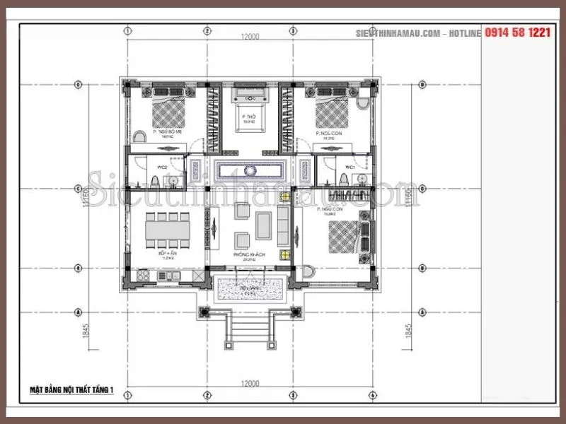 Mặt bằng nội thất nhà biệt thư vườn 1 tầng ở Vĩnh Phúc