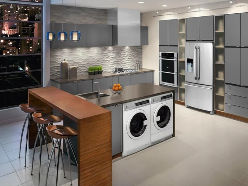 Không đặt bếp giữa tủ lạnh và máy giặt. Bếp thuộc mệnh Hỏa, trong khi đó tủ lạnh và máy giặt lại thuộc hành Thủy. Hỏa bị bao vậy giữa 2 yếu tố Thủy sẽ gây ra nhiều bất lợi về phong thủy.