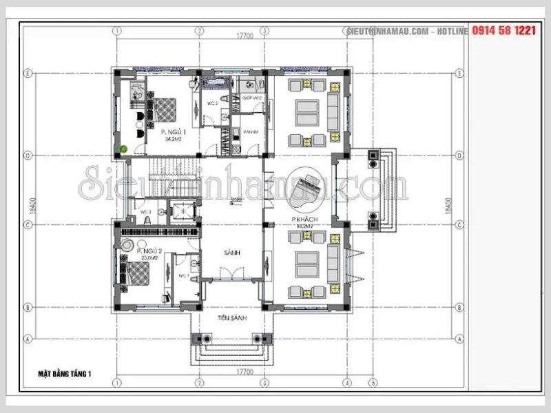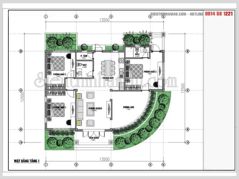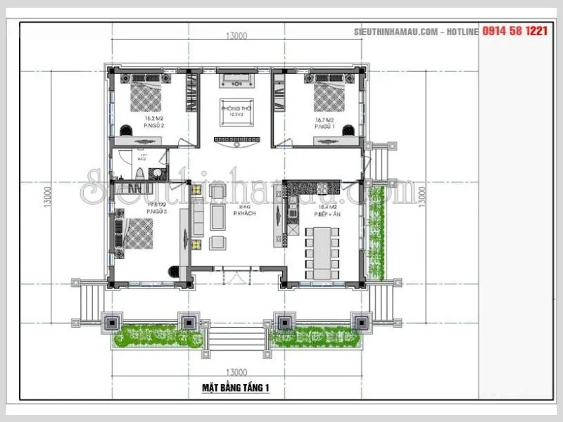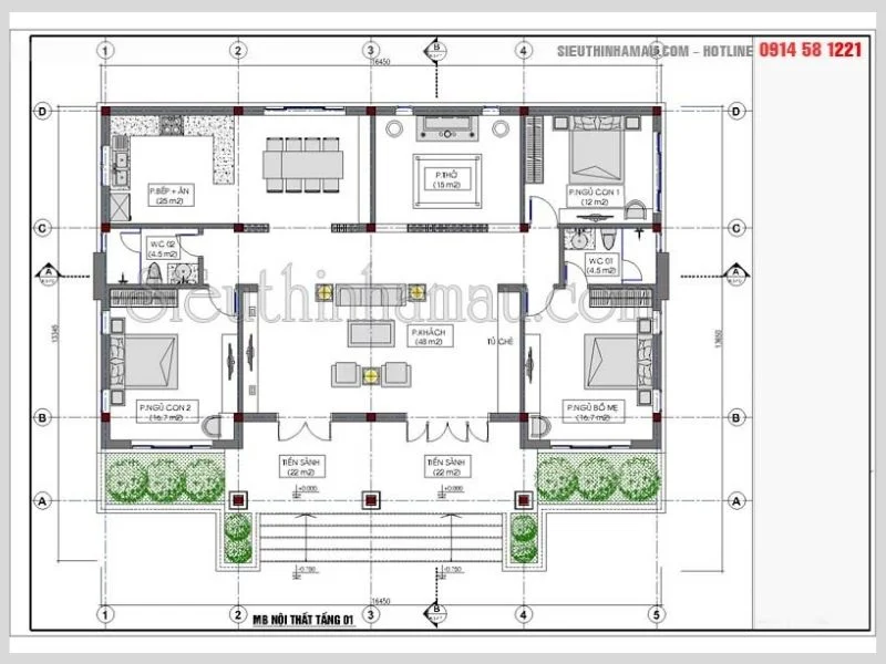 Thiết kế nhà biệt thự 1 tầng diện tích 120m2 – 150m2: 18.000.000đ/Bộ hồ sơ thiết kế chi tiết