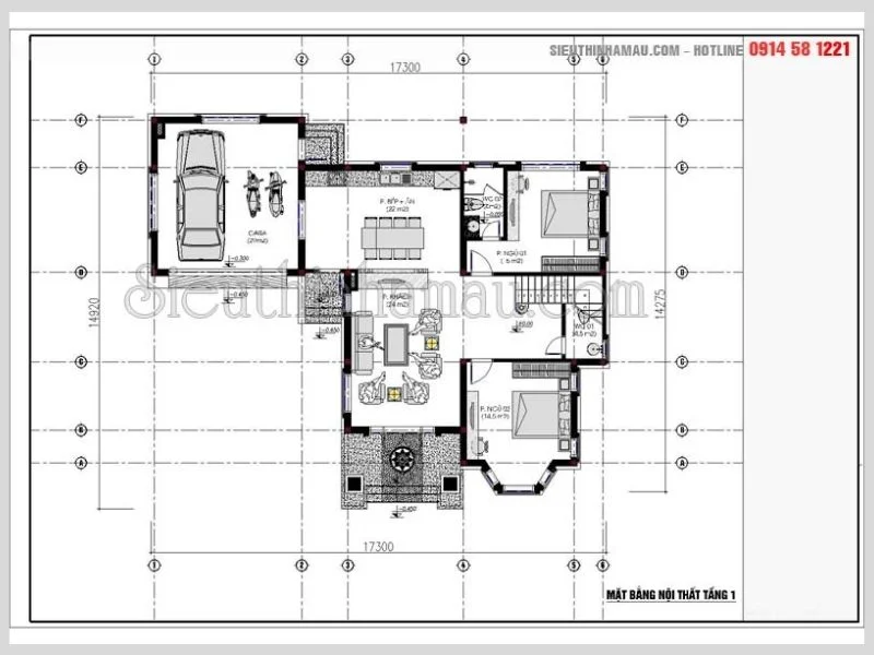 Bản vẽ nội thất tầng 1 mẫu biệt thự kiểu châu âu