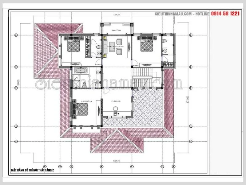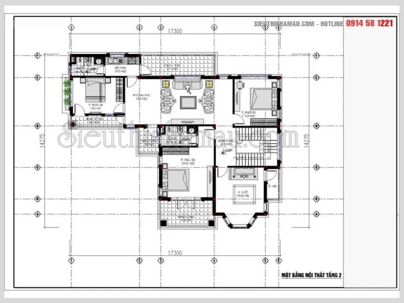 Hình ảnh bản vẽ thiết kế nội thất tầng 2 phong cách châu âu ở Sơn La