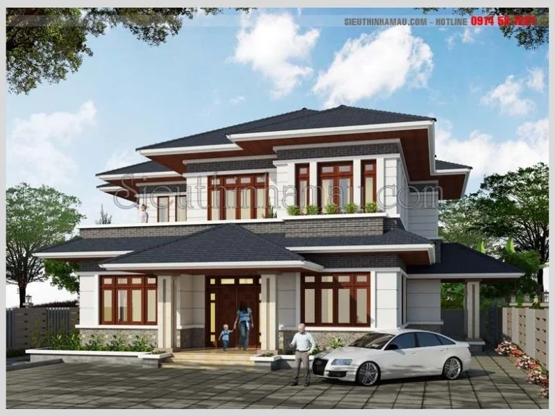 Thiết kế nhà mái thái có sân vườn 2 tầng đẹp