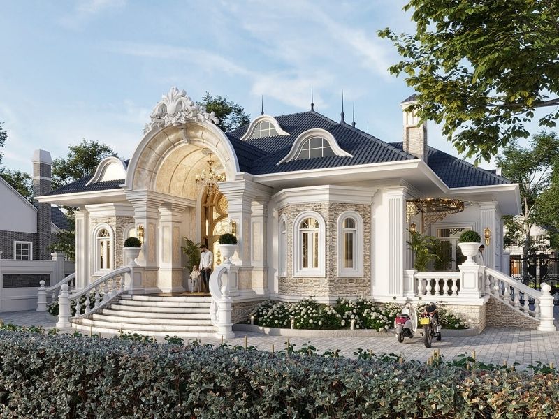 Vẻ đẹp hút hồn từ mẫu thiết kế nhà cấp 4 1 tầng phong cách tân cổ điển, đậm chất Châu âu.
